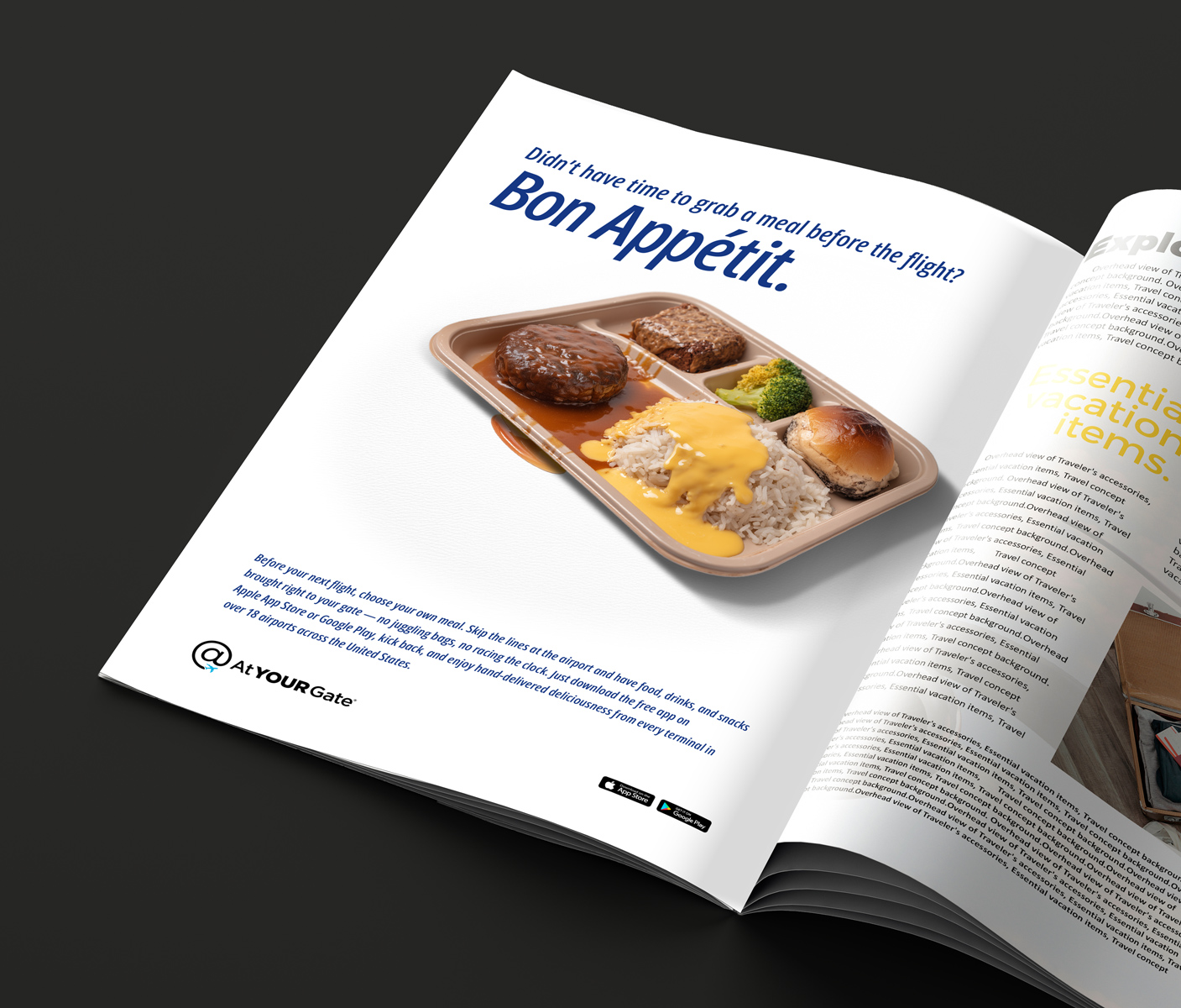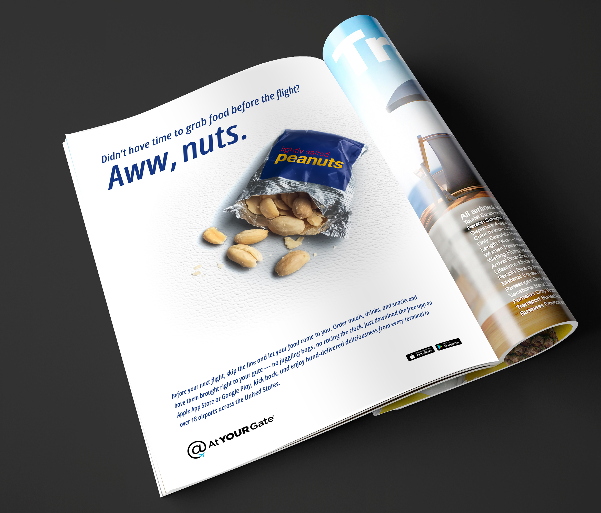 And for those who find themselves on a flight without having grabbed sustenance, we created in-flight magazine ads that reminded passengers what was in store for them on the flight, whether it be a very light snack, or a meal that’s rightfully earned its reputation as airline food.