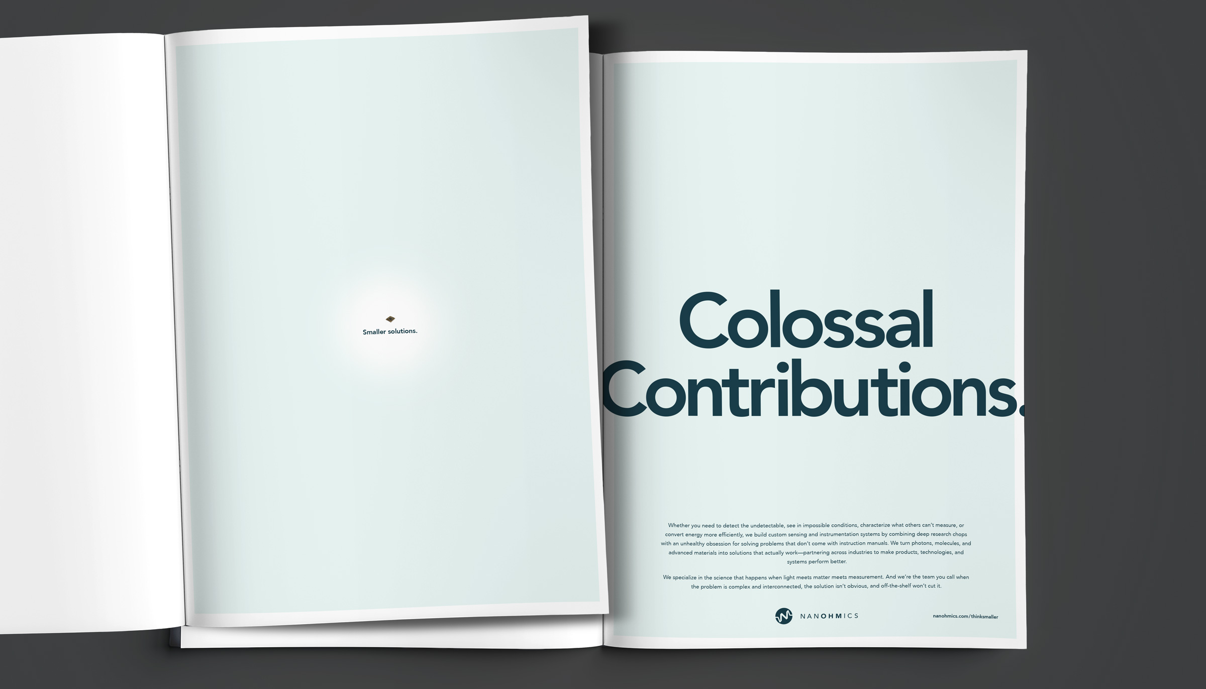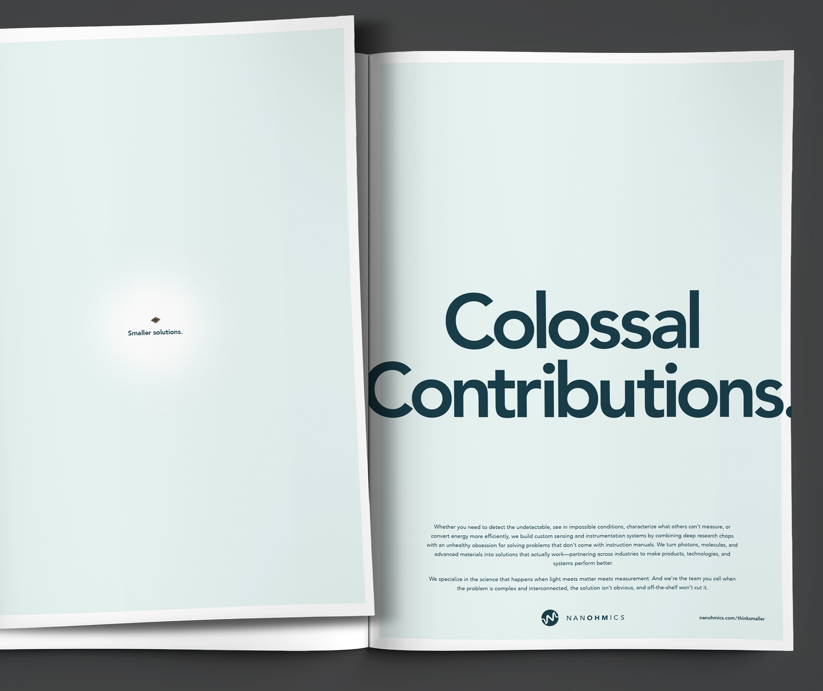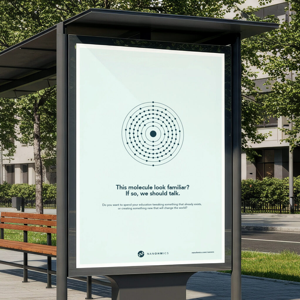 Instead of the usual ”big picture” talk, we leaned into minimalist ads with tiny headlines like “Think smaller” to directly mirror the nano and micro-scale work Nanohmics is known for. The small text wasn’t just a design choice; it was a literal representation of the precision and atomic-level focus required for these roles. It was a cheeky way to stand out and attract the kind of highly specialized talent who loves getting into the weeds of high-level science.